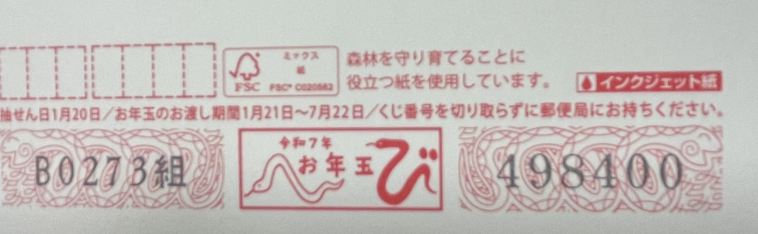 お年玉くじ 雑談 2025.01.20 年賀状のお年玉くじ、今年は一つも当たっていませんでした。残念。去年は喪中で5枚しか受け取らなかったのに、当たり1枚。その前の年は当たり3枚。年賀状が減っているとは言え、ちょっと残念です。
