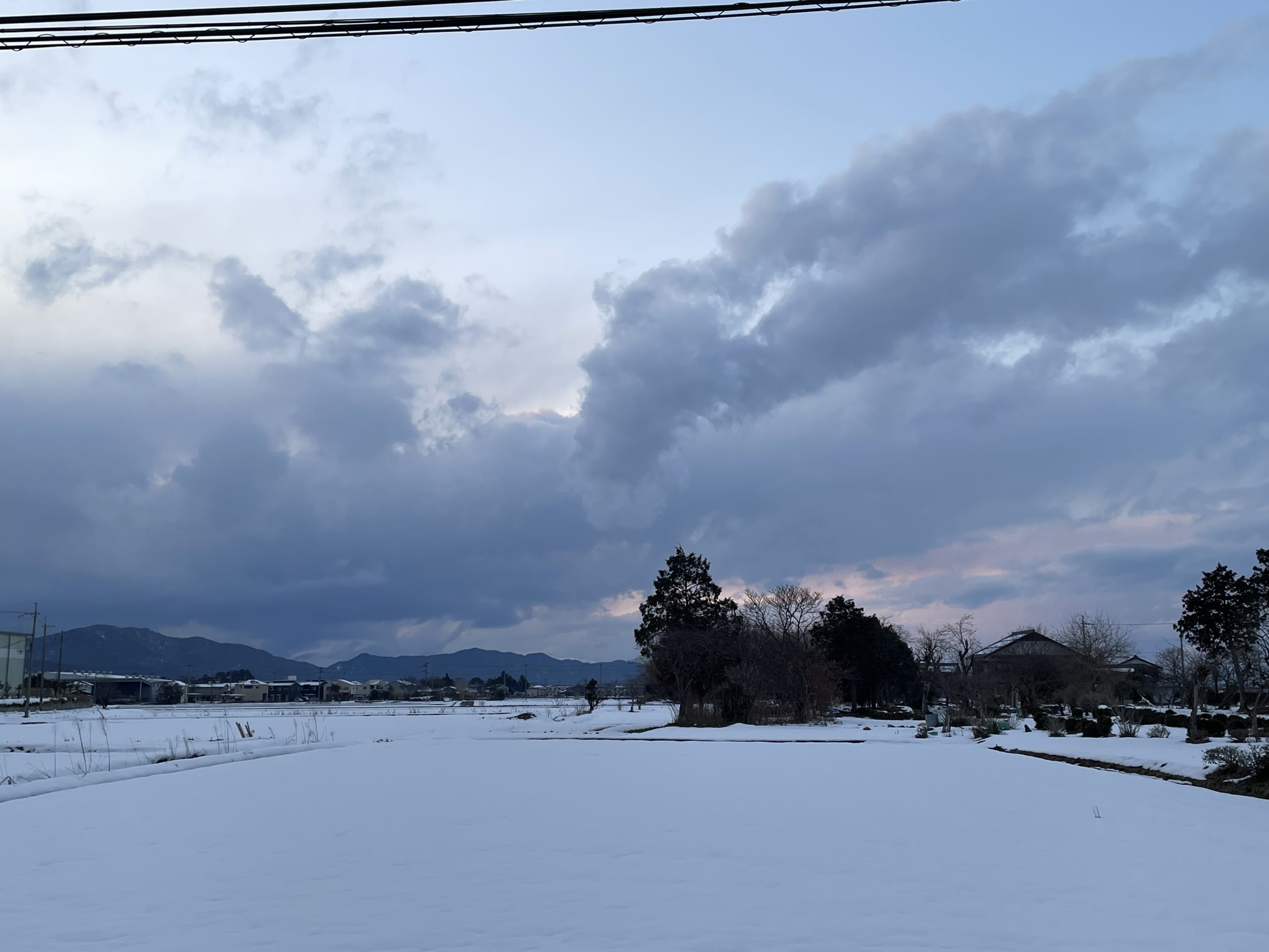 雪景色は、お店のすぐ裏。駐車場から撮りました。