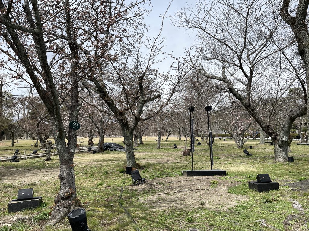 桜の園の少し手前。ライトアップ時の屋台の準備がされている辺り。