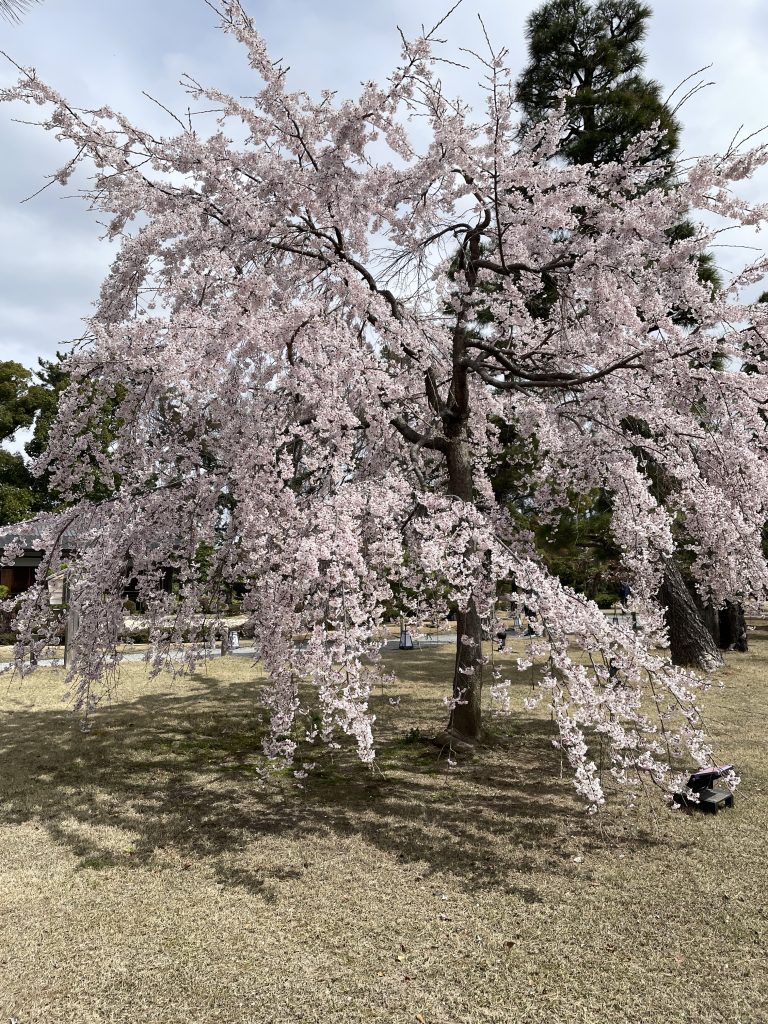 ここの枝垂桜はまだまだ。これは八重? 情報によれば、一重の枝垂桜は満開で、八重が咲き始めらしいです。