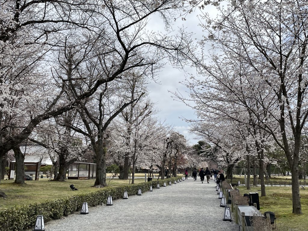 行ったのは二条城。ガイジン団体観光客さんが何組もいらっしゃいました。午前中に行ったので混雑はまだましでしたが、帰る頃には入場券売り場にくねくねと何重にも長い列が出来ていました。