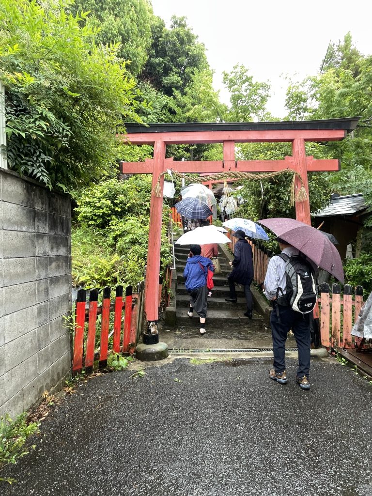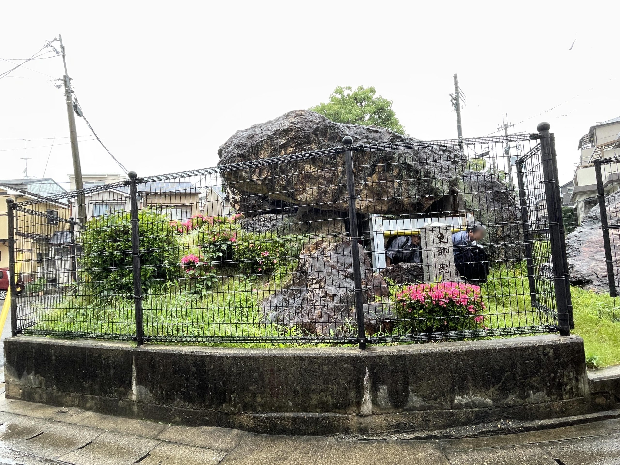 太秦駅に集合した後、この雨の中を垂箕山古墳(現・仲野親王墓)、ここは昔は誰でも入れたそうですが、入れなくなっていました。