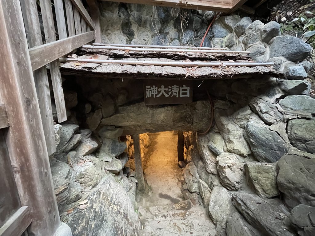 蚕ノ社にある三角鳥居。柱が3本あります。