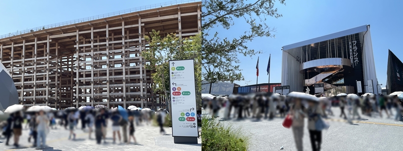 ミャクミャクの像にご挨拶した後、大屋根リングの下に。そこで、スタッフに入りやすいパビリオンを尋ねる。フランス館が少々列があってもサラサラと流れて入りやすいと、予めSNSで得ていたのと同じ話をしてくれたので行ってみる。が、行ってみると混雑のため入場制限。並ぶのも遠慮してもらっているとのことなので、あっさり諦める。