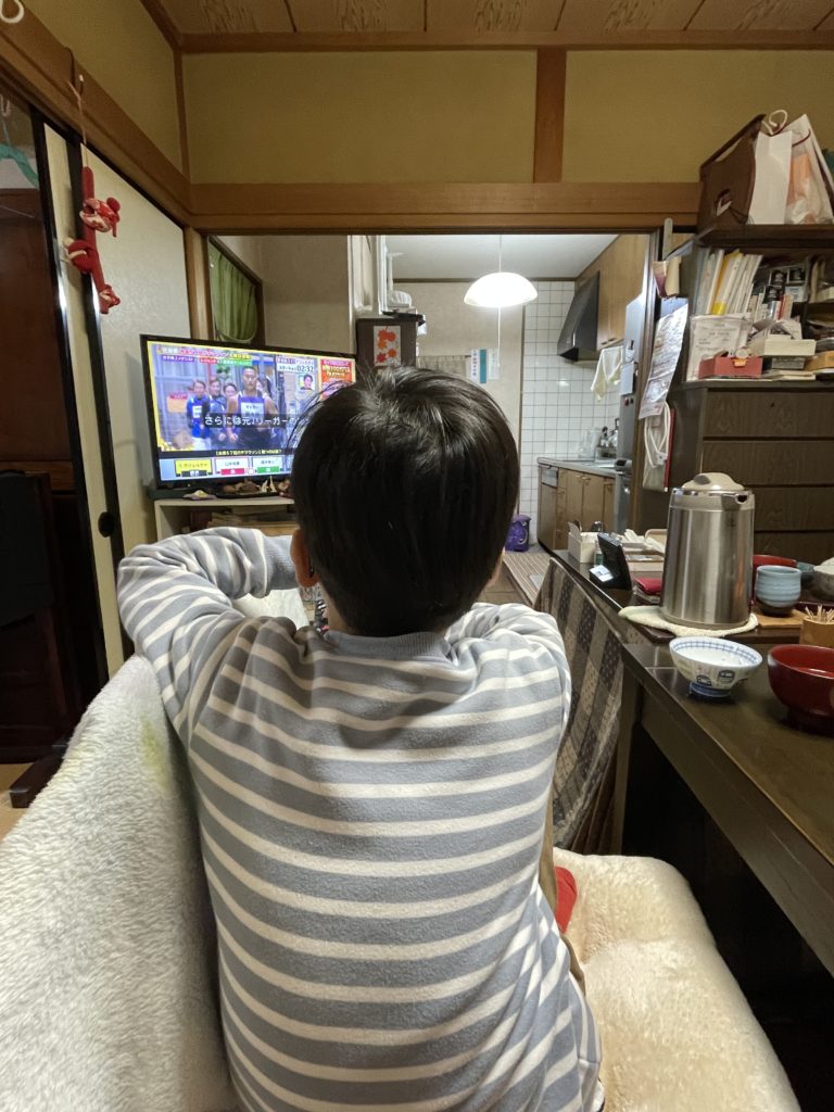 2号はご飯食べ終わってテレビに熱中。