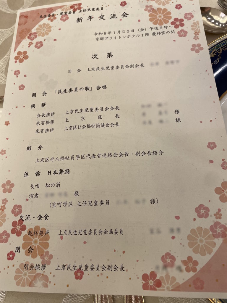 民生委員の区内新年交流会。某ホテルにて。