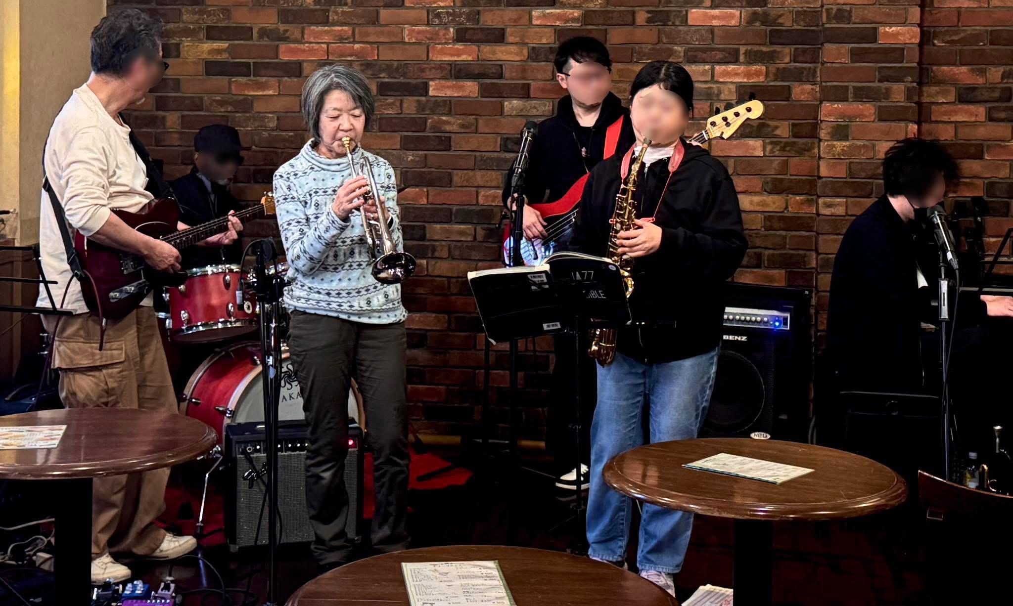 参加者(客)はVo,Gt, Sax各1人と私Tp。こんな楽しいセッションなのに、こんなに人数が少ないなんて、もったいない…。