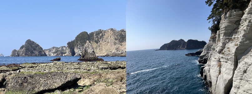 その後、船では行けなかった天窓洞を上から眺める。でも洞窟の眺めは、イマイチでした。洞窟の上が歩道になっていて、ここからの海の眺めはとても素敵でした。ここで海の眺めを堪能して、次はバスで下田に向かう。