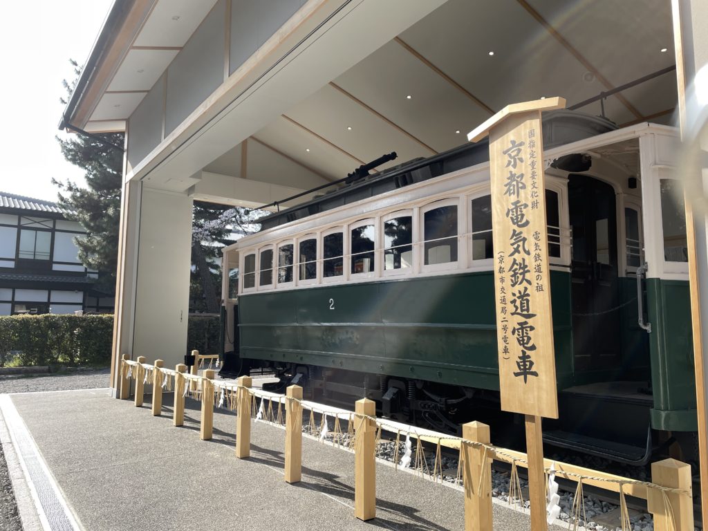 昔はお庭の中にチンチン電車が置いてあった記憶があるのだけれど、今は一番外の門の手前に、修繕工事を終えたばかりの電車が展示されていました。